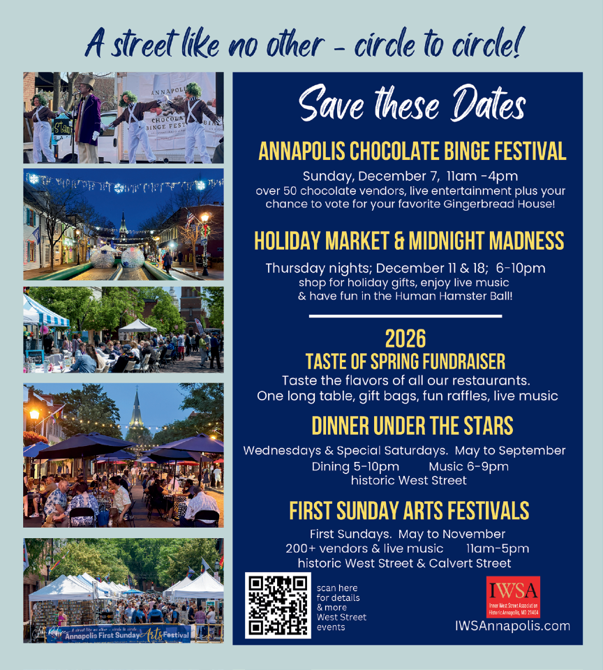 ▸Annapolis Arts District▸Inner West Street Association▸Arts Council of Anne Arundel County▸Visit Annapolis▸Apex Film & New Media▸Maryland Federation of Art▸Annapolis Symphony Orchestra▸Mitchell Art Museum▸Honabeats Says▸Nye Design & Construction▸Deirdre Tanton Art▸Live Arts Maryland▸Wimsey Cove Framing & Fine Art Printing▸Spirit Shop of Annapolis▸Rams Head Tavern▸Dark Horse Annapolis▸Annapolis Painting Services▸Evolve Direct Primary Care▸Nancy Hammond Editions▸ABS Architects▸Ketch 22▸The Point Crab House & Grill