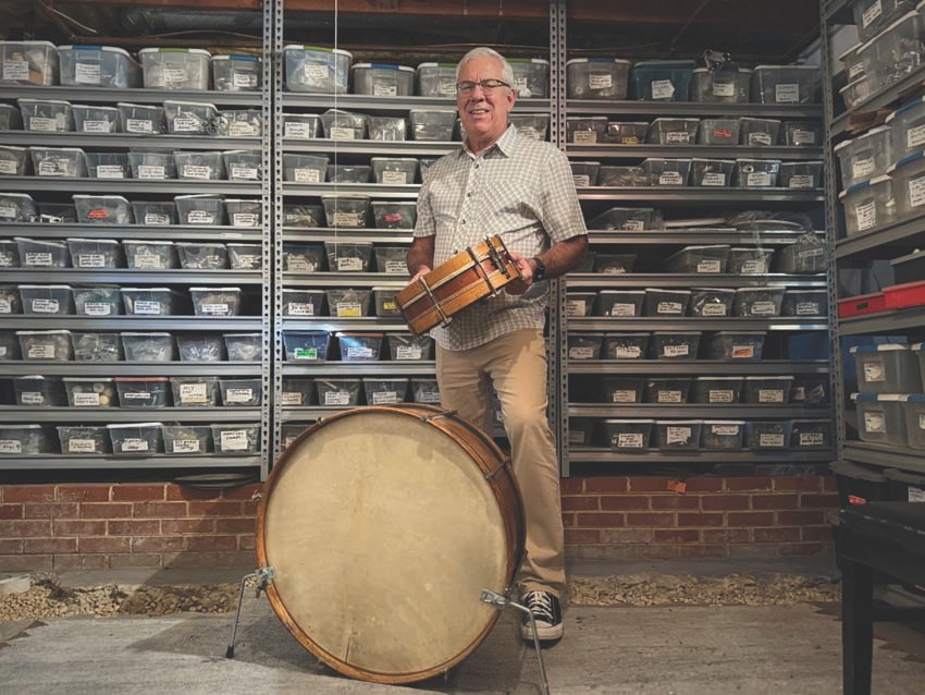 Weekdays are spent at home, working on drums in his shop. In the mornings, he walks or takes a bike ride, which helps maintain strength and energy for playing weekend gigs. The schedule is packed, playing with multiple bands, including FessuP, the Monuments, West Street Revival Band, Rick and the Revolving Doors, and Well Alright, a Rolling Stones tribute band. He also fills in with Michael K and Timmie Metz. He’s grateful for having more work than he can keep up with.