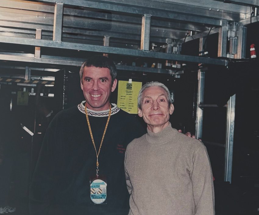 Instead of going to college, King continued playing music and working various jobs during the day. He also picked up gigs as a soundman to supplement his income. One of those jobs was at Master Musicians, a music store in Glen Burnie, where he specialized in appraising, restoring, and selling antique drums. His reputation of being knowledgeable about vintage drums eventually led to a phone call from the Rolling Stones, who were looking for a specific bass drum for Charlie Watts. King didn’t have the drum in stock, but he found one and restored it for Watts. Four months later, King delivered it just in time for the band’s tour. King and Watts developed a relationship in which Watts trusted King to deliver on his special equipment needs, and the demand for King’s expertise as well as his access to distinguished company increased exponentially.