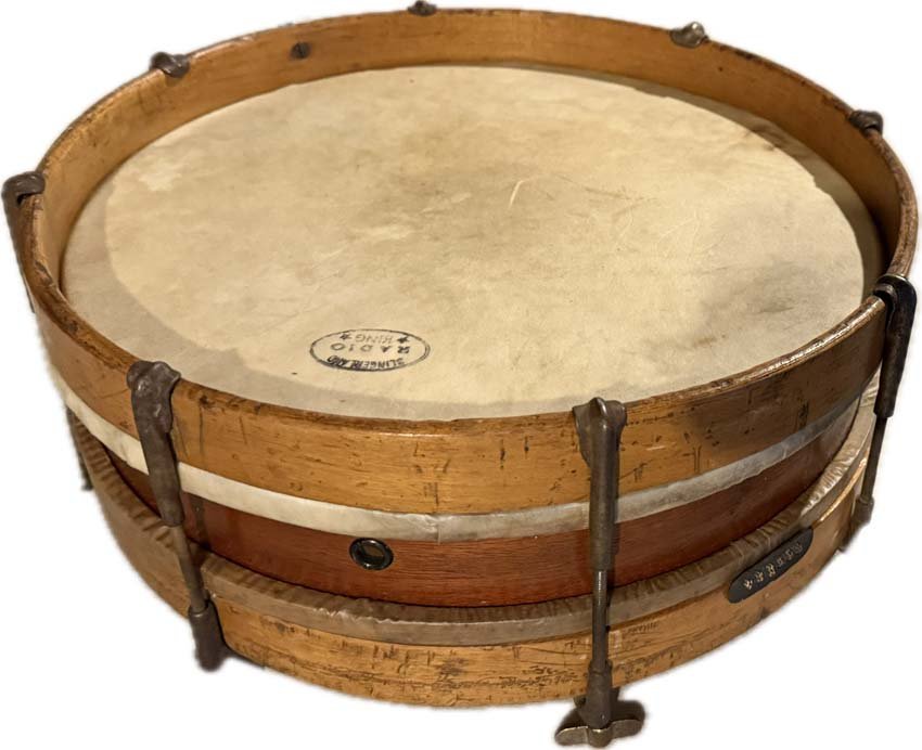 He assembled makeshift drum kits from whatever materials he could get his hands on: garbage pails, potato chip cans, ash trays. Eventually, his mother gave him a snare drum that he played for about a year before requesting a full drum set. When his mother said she couldn’t afford it, King got a newspaper route and saved up money to buy one himself. The kit wasn’t in great shape, so he took it apart, cleaned it, and repaired it to a playable condition. King played that drum set for a couple of years, until he could buy a professional one. He built his playing skills by listening to records through headphones (which he also saved up to buy) and playing along with the music. That persistence was foundational to his career as a player and a vintage drum expert.